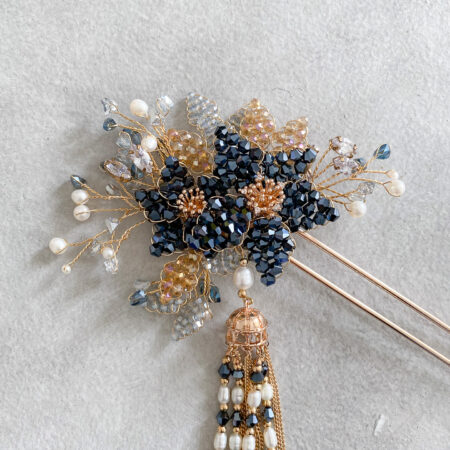 Navy Beaded Flower Hairpin – Gold, Navy Rp 1.785.000