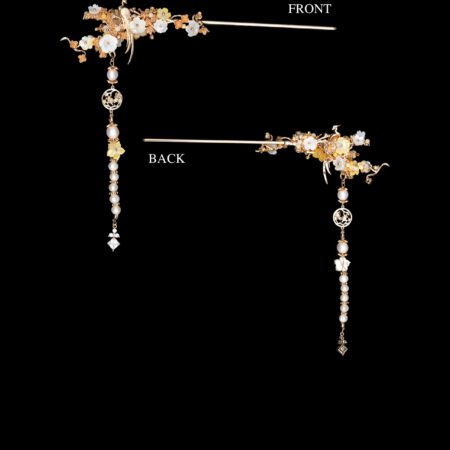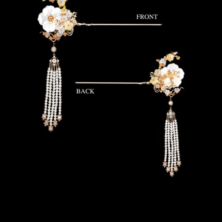 Bird on Petite Branch Flower Hairpin – Gold, White Rp 4.185.000
