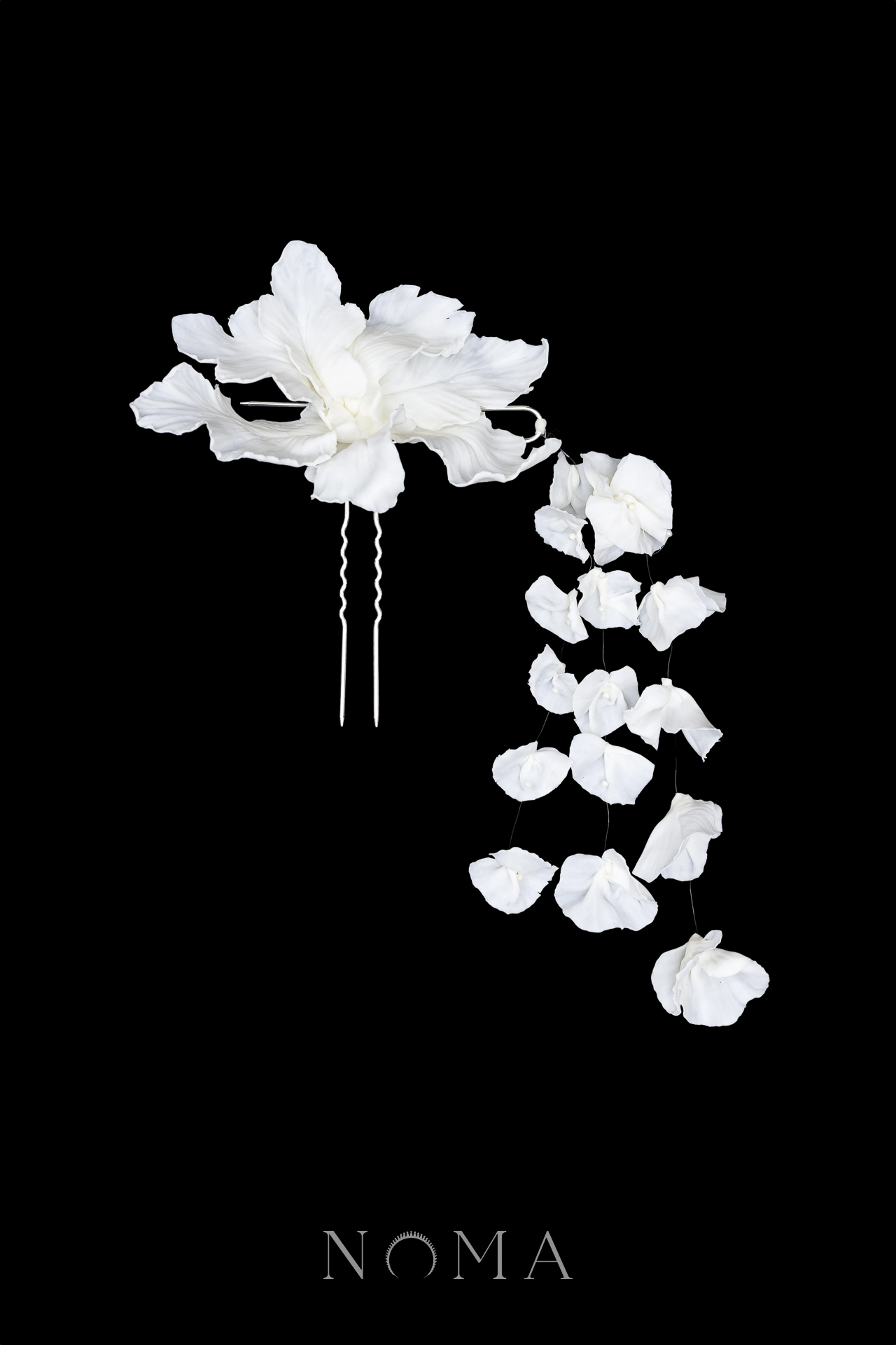 CC Floral Cascade Hairpin and Tassel Set – White Silver, White